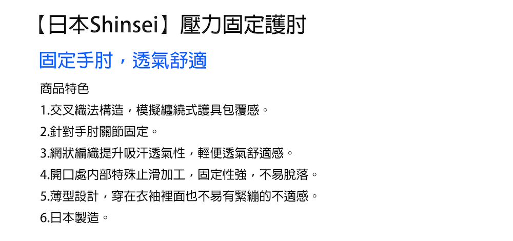 內容物:【日本 Shinsei】壓力固定護肘 1 入