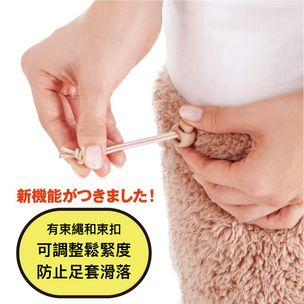 新版極暖足套在大腿上緣處加上了束繩和束扣,可調整鬆緊度,防止足套滑落!