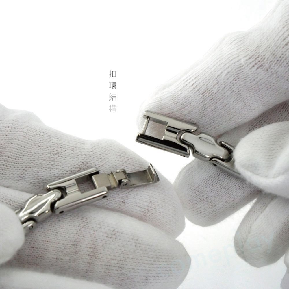 材質:主體 - 純鈦材質(僅扣環的鉤部為不鏽鋼)、純鍺粒
