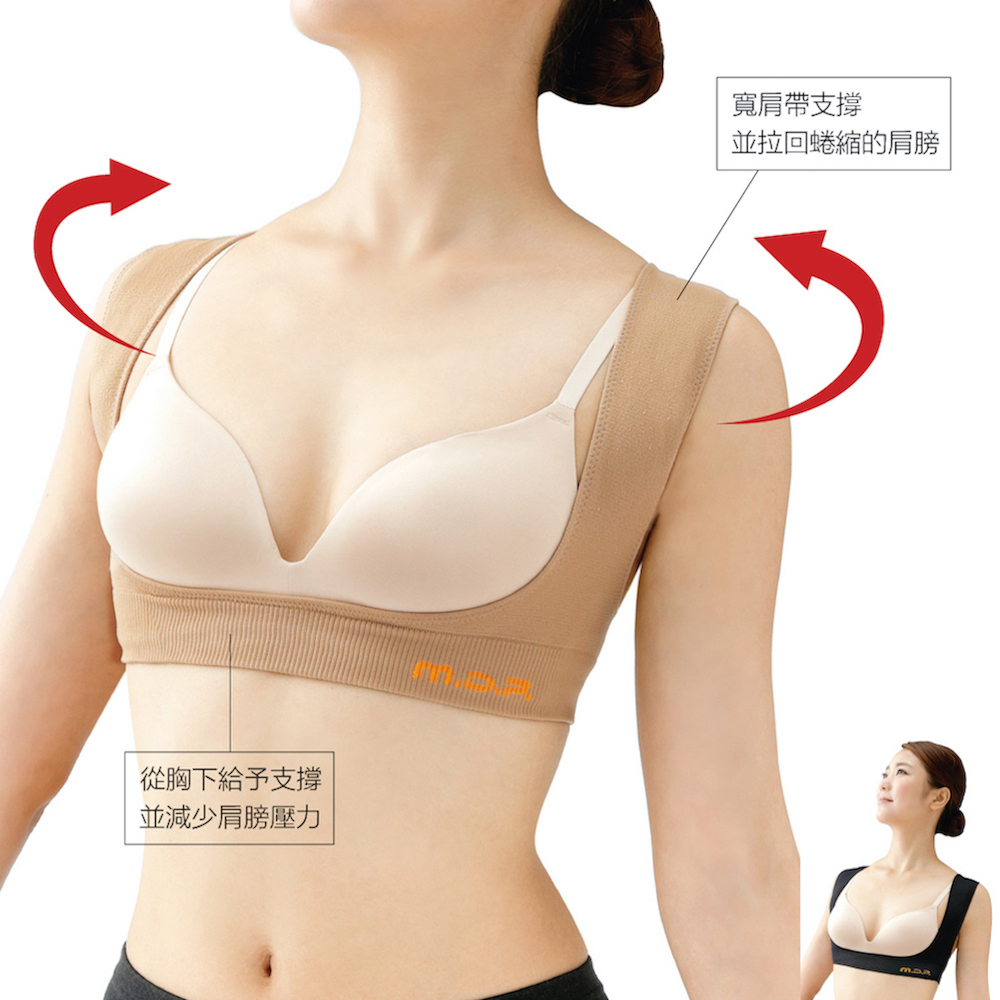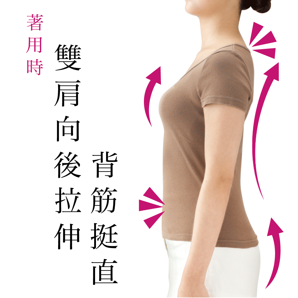 穿戴本產品時,肩胛骨自然拉開,胸部敞開,姿勢正確。