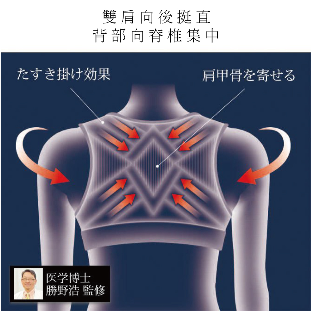 ● 交叉效果將肩胛骨向後擴,形成自然挺直的正確姿勢。