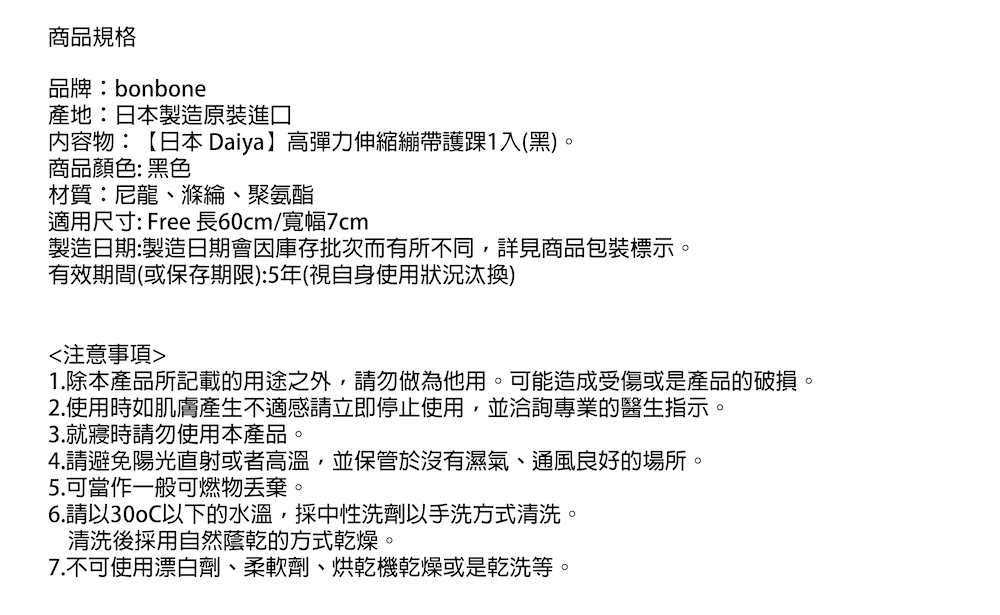 內容物:【日本 Daiya】高彈力伸縮繃帶護踝1入(黑)