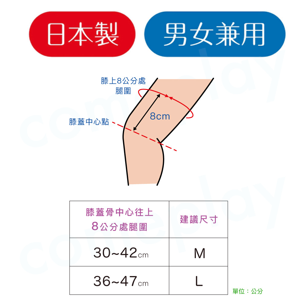 適用尺寸膝蓋骨中心往上約8公分處):   M:30~42cm     L:36-47 cm