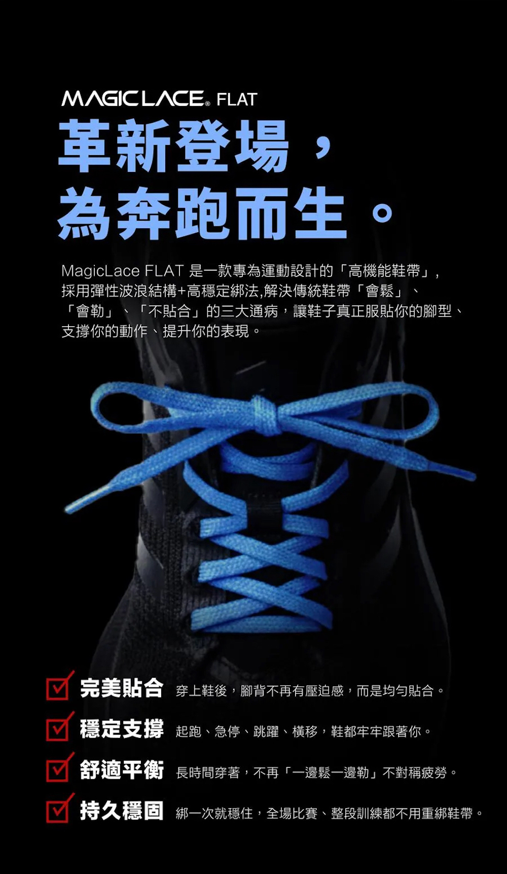 無論跳躍、衝刺或急停,鞋帶始終穩定不移位