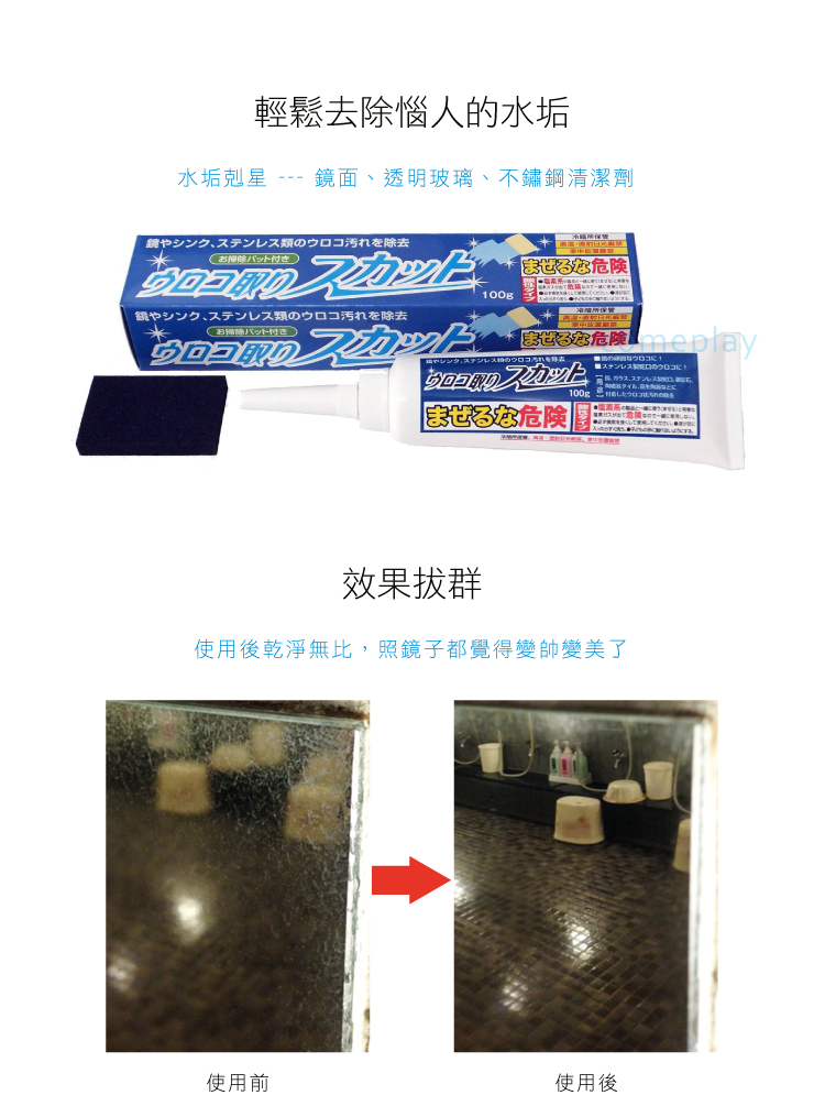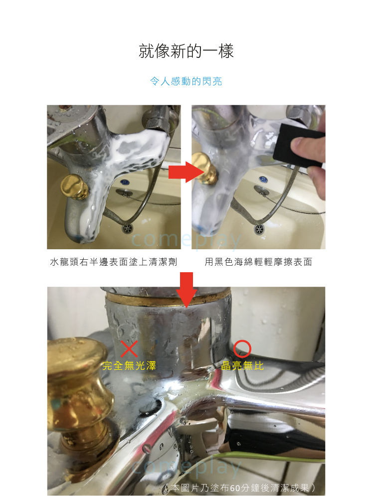 ● 本產品主要用於鏡子、不鏽鋼製品如水龍頭、玻璃等。
